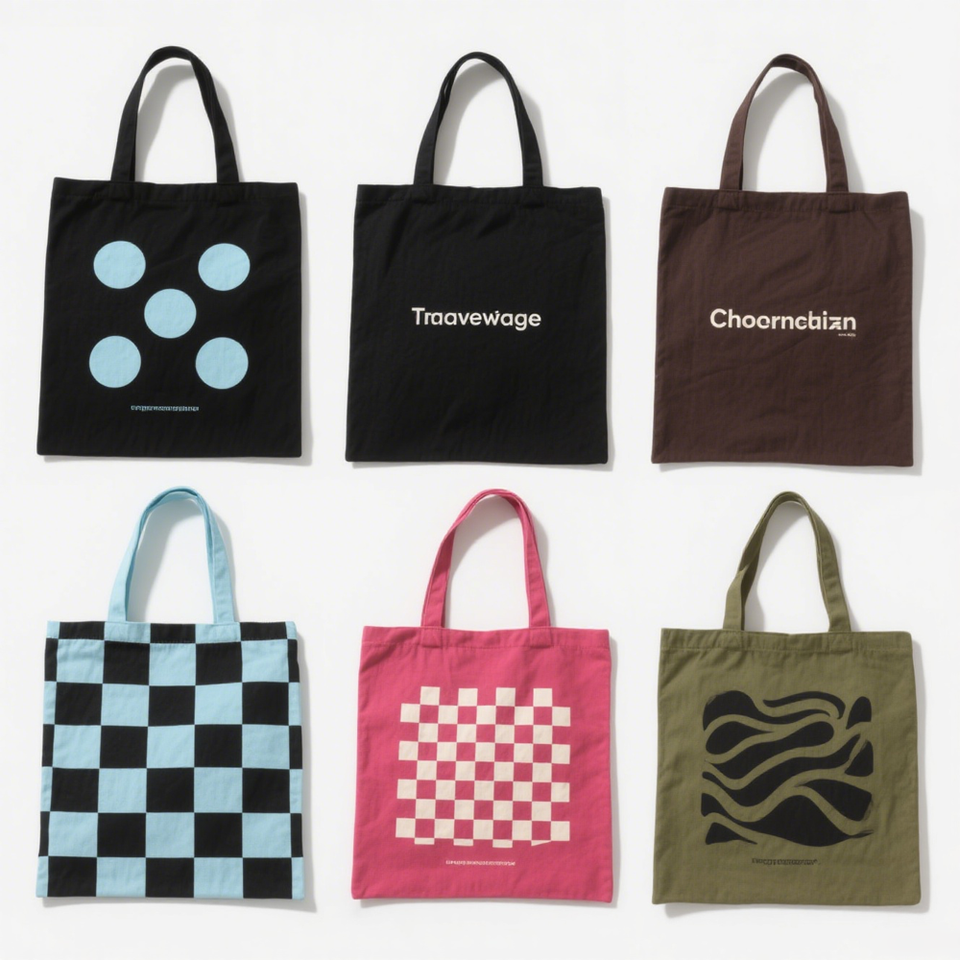 Custom Black Canvas Tote With Blue Dot Print Organic Cotton for Women Work Library Bulk Reusable Grocery Bag Use