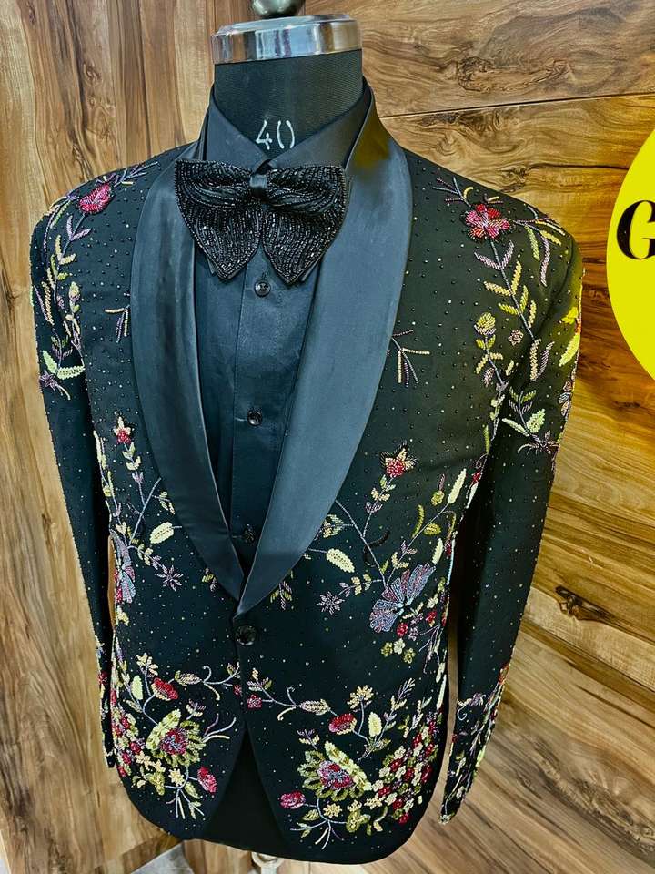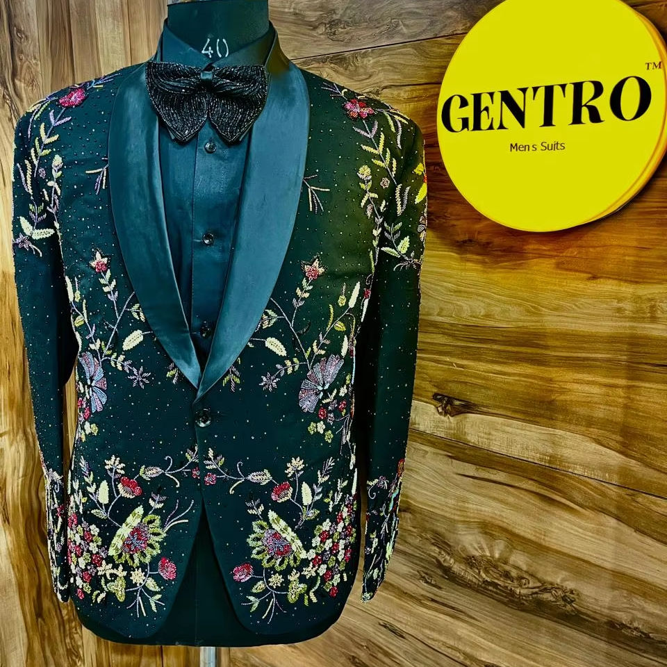 Custom Black Designer Hand Embroidered Tuxedo Traditional Groom Jacket Wedding Luxury Mens Suit Male Elegant Outfits