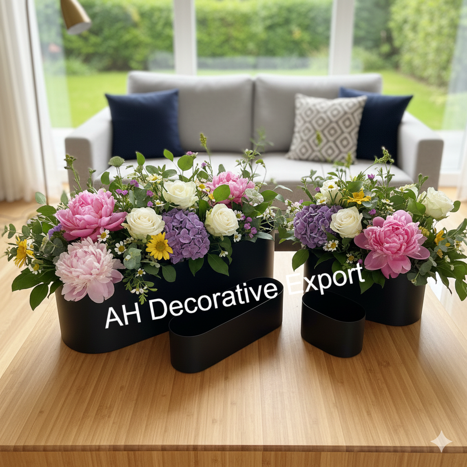 Custom Modern Metal Matt Black Round Tabletop Flower Vase with Portable Design for Event Decoration
