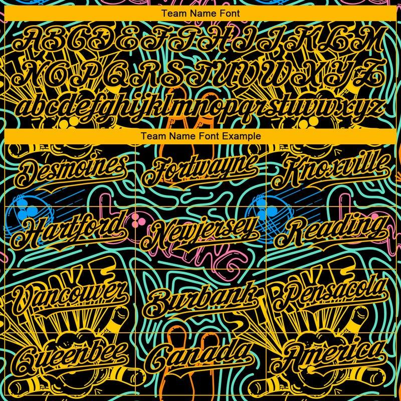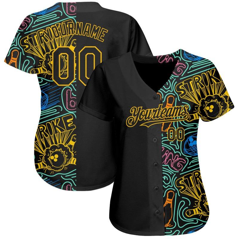 Custom Black Gold 3D Pattern Design Bowling Authentic Baseball Jersey