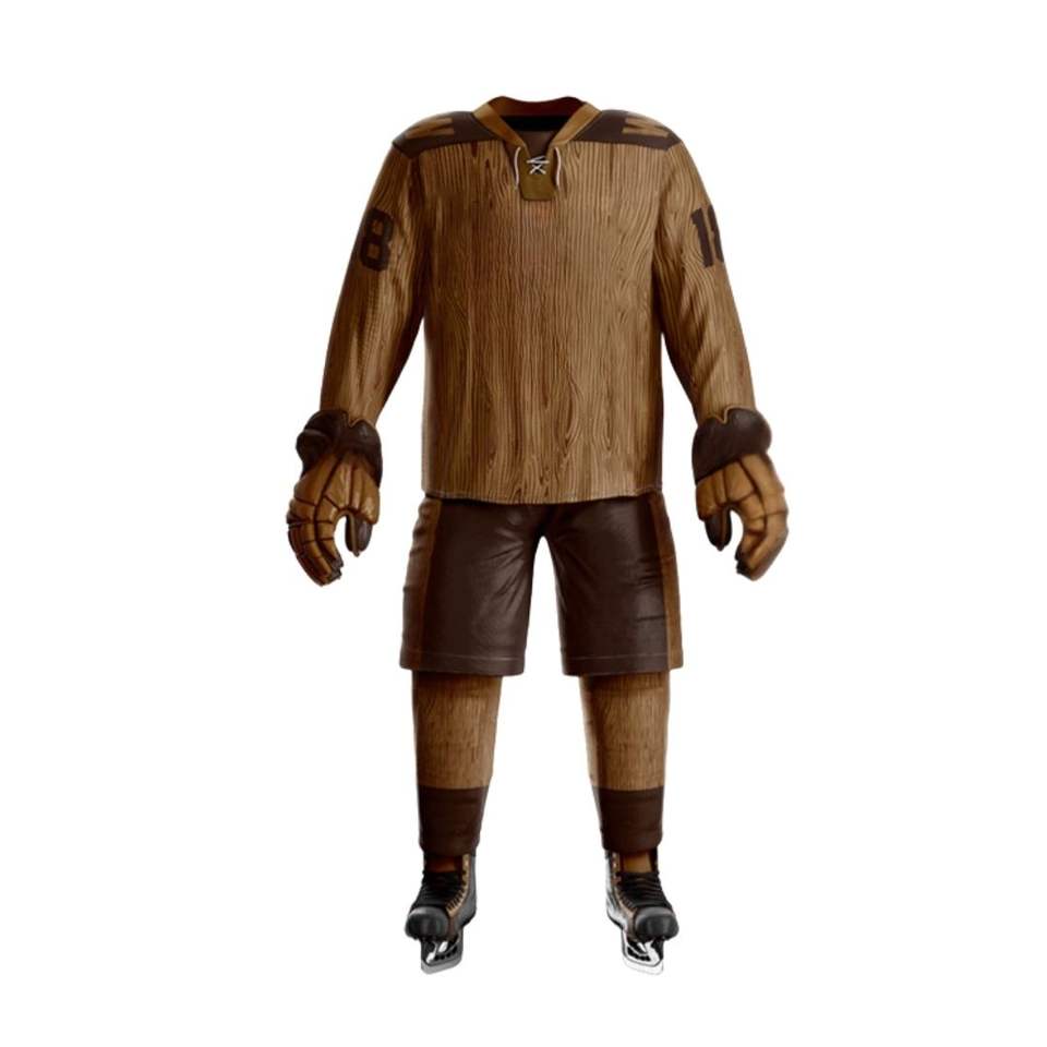 Custom Black Gold Chevron Stripe Sublimated Polyester Pro Team Set Personalized Name Number Ice Hockey Uniform