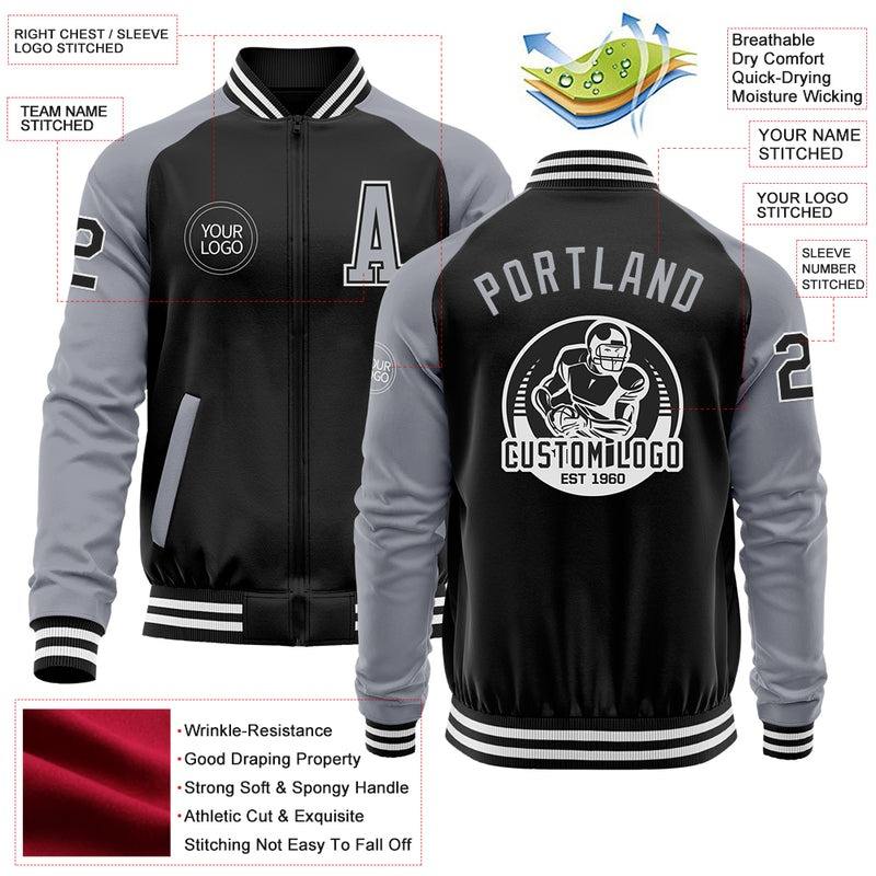 Custom Black Gray-White Bomber Varsity Letterman Two-Tone Single Button Jacket Winter Waterproof Reversible Windbreaker