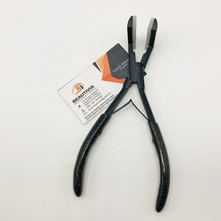 Custom Black Matte Stainless Steel Tape-In-Press Plier Engraved Logo Hair Extension Tools Silicone Pad for Caring Human Hair