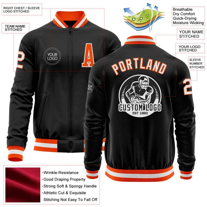 Custom Black Orange-White Bomber Varsity Letterman Zipper Jacket Windbreaker Streetwear Vintage Men's Varsity Jacket