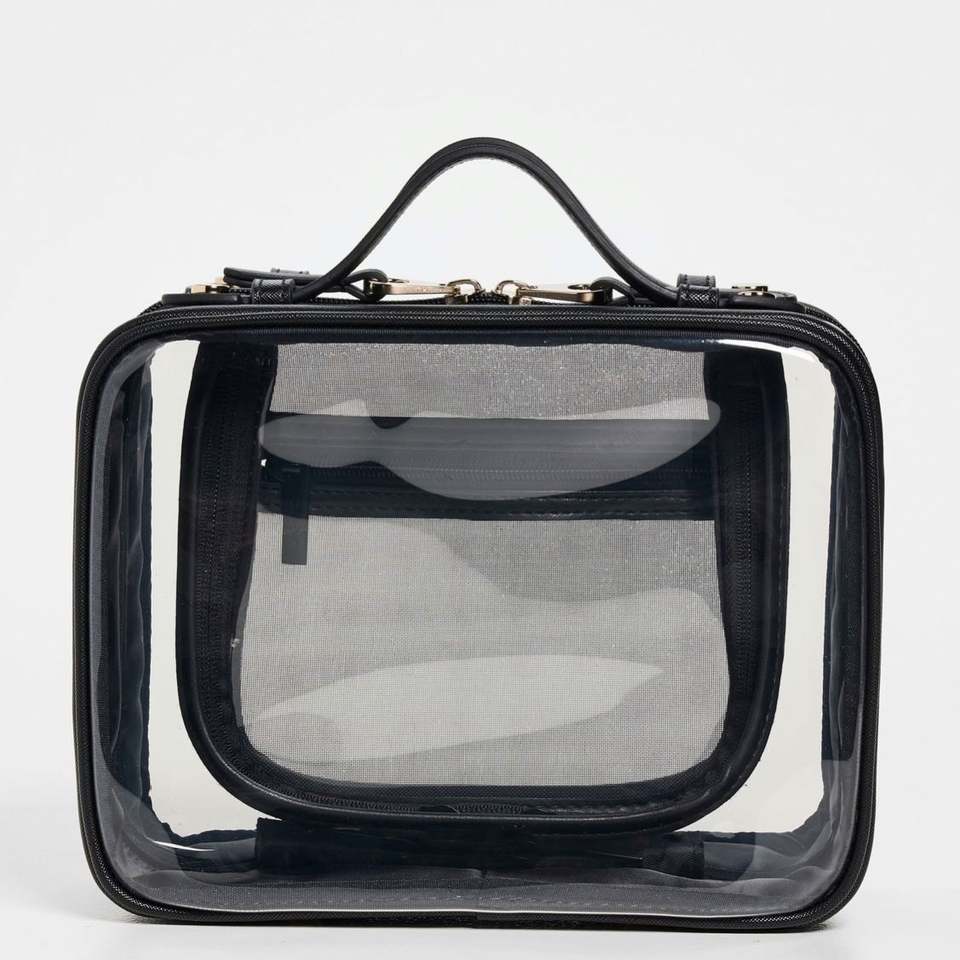 Custom Black PVC Zipper Handle Waterproof Eco-Friendly Makeup for Bag Large Capacity Double Compartments Organizer Storage