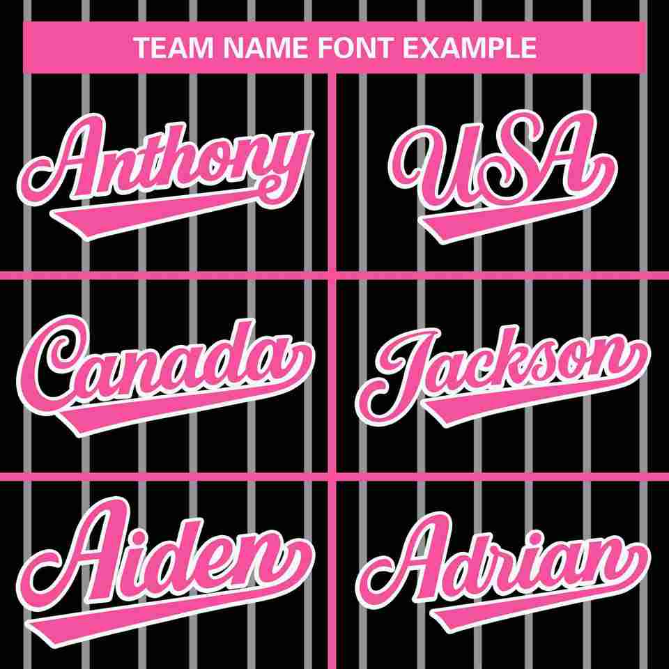 Custom Black Pink-Light Gray Stripe Fashion Design Full Button Authentic Baseball Jersey