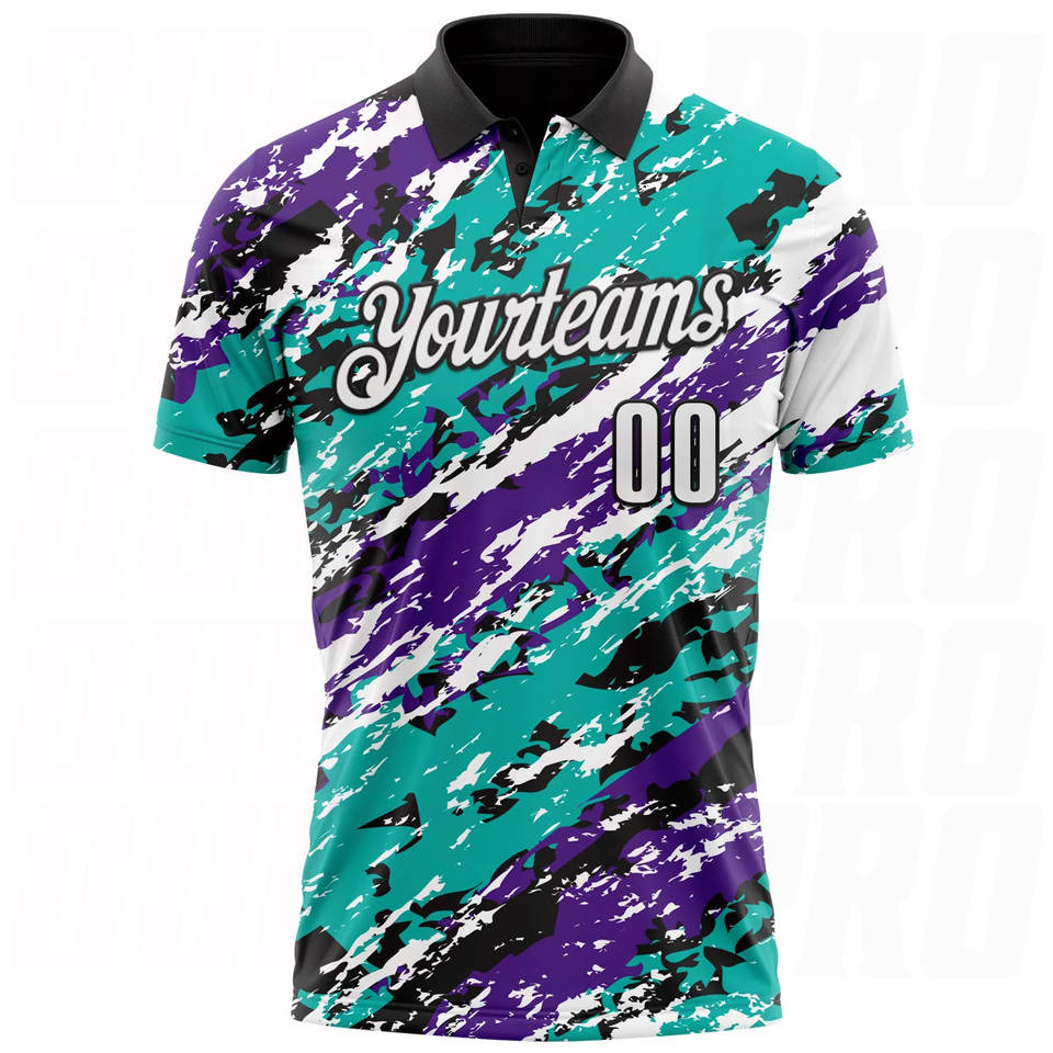 Custom Black Purple Aqua 3D Bowling Art Performance Polo Shirt Moisture Wicking Athletic Polo Bowling Training Sports Wear