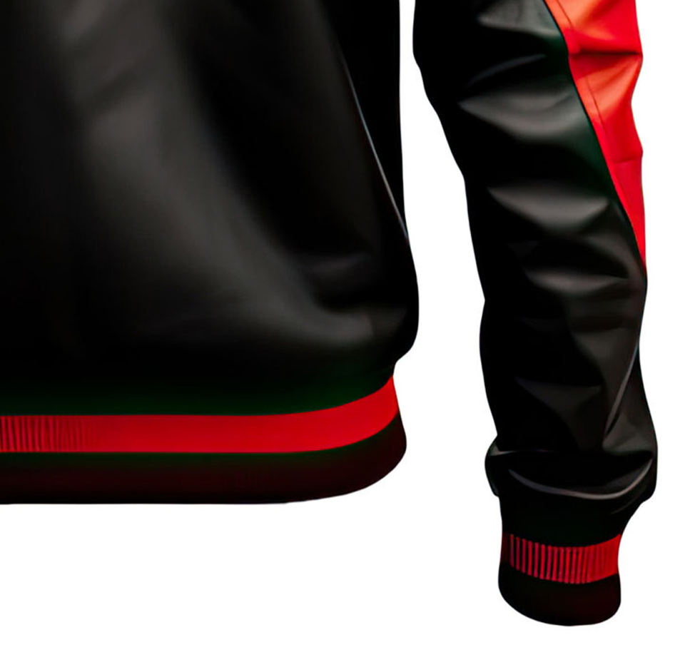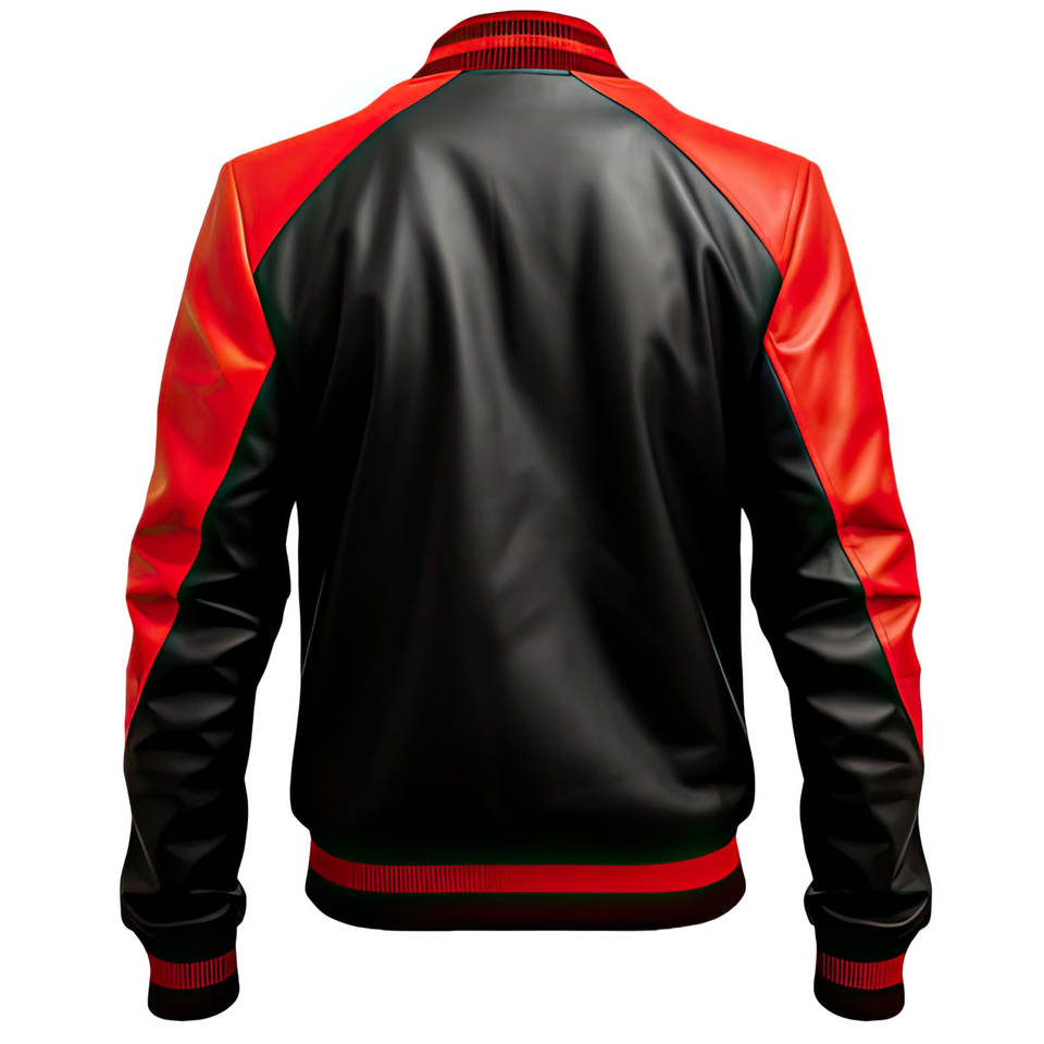 Custom Black Red Genuine Sheepskin Baseball Jacket Stand Collar Smooth Classy Sporty Scooter Zip-Up Varsity Bomber Canvas Fabric