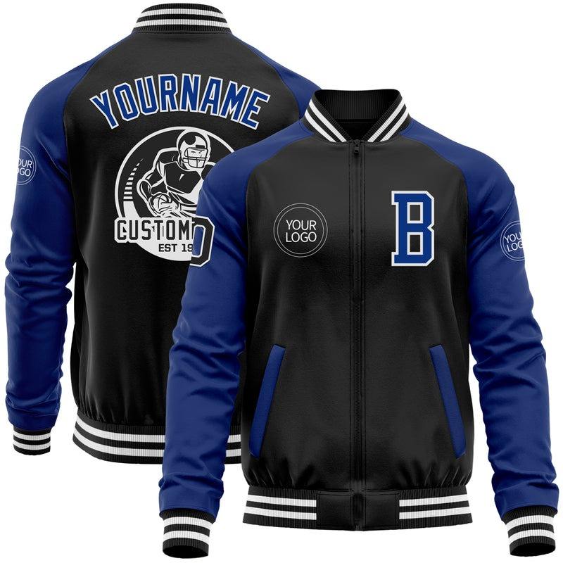 Custom Black Royal-White Bomber Varsity Letterman Two Tone Zipper Jacket Windbreaker Streetwear Vintage Men's Varsity Jacket