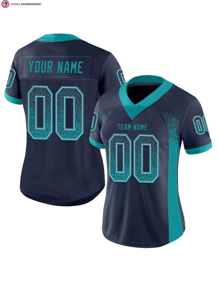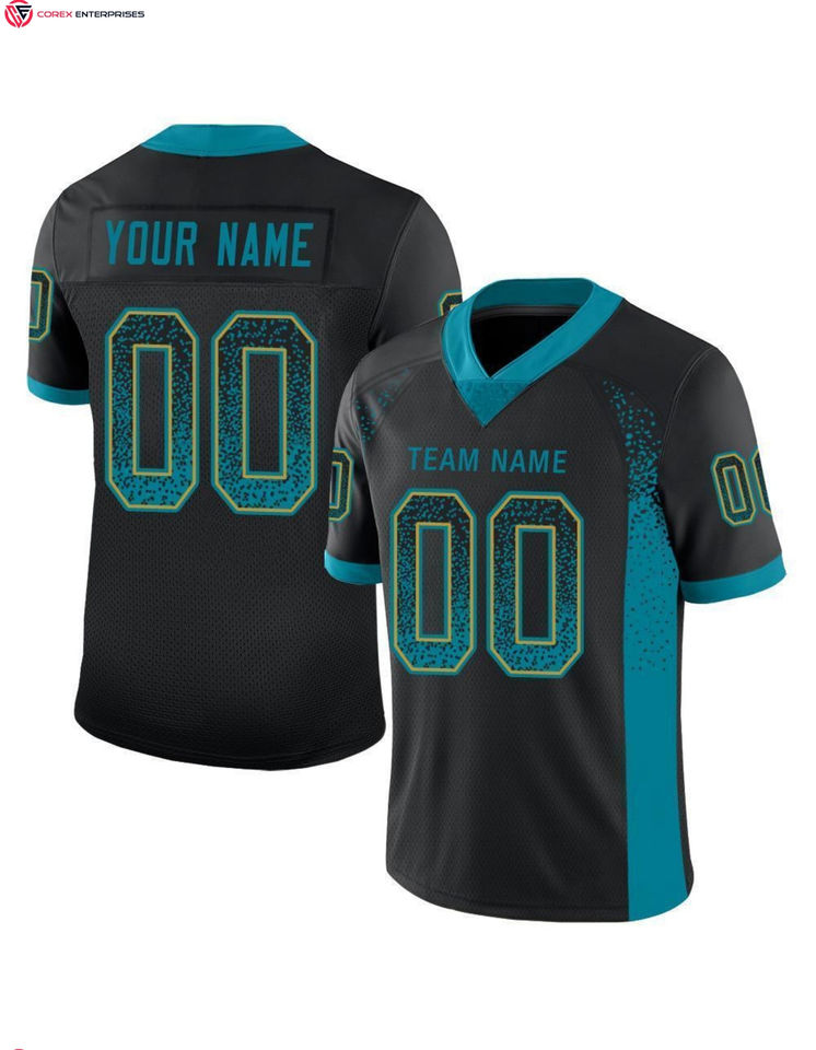 Custom Black Teal-Yellow Mesh Drift Fashion 100% Polyester Football Jersey Breathable Short Sleeve Printed Solid Pattern Front