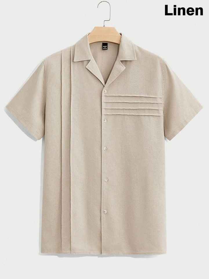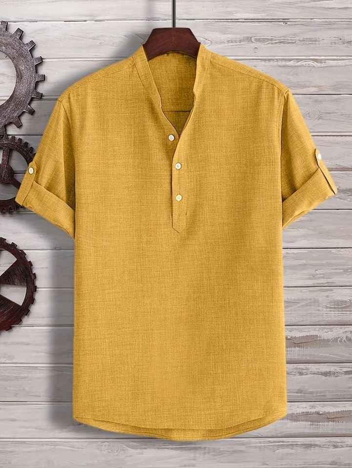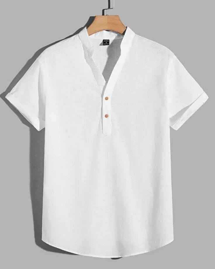 Custom Black V-neck Breathable 100% Organic Cotton Men Summer Casual Shirt Short Sleeve Button up