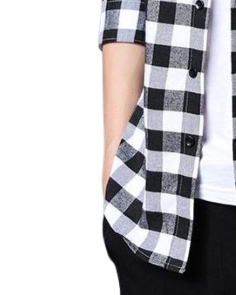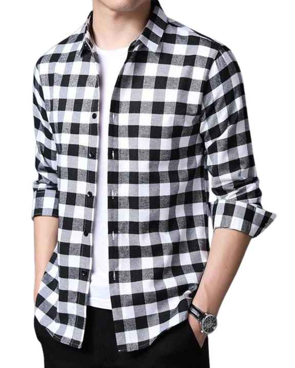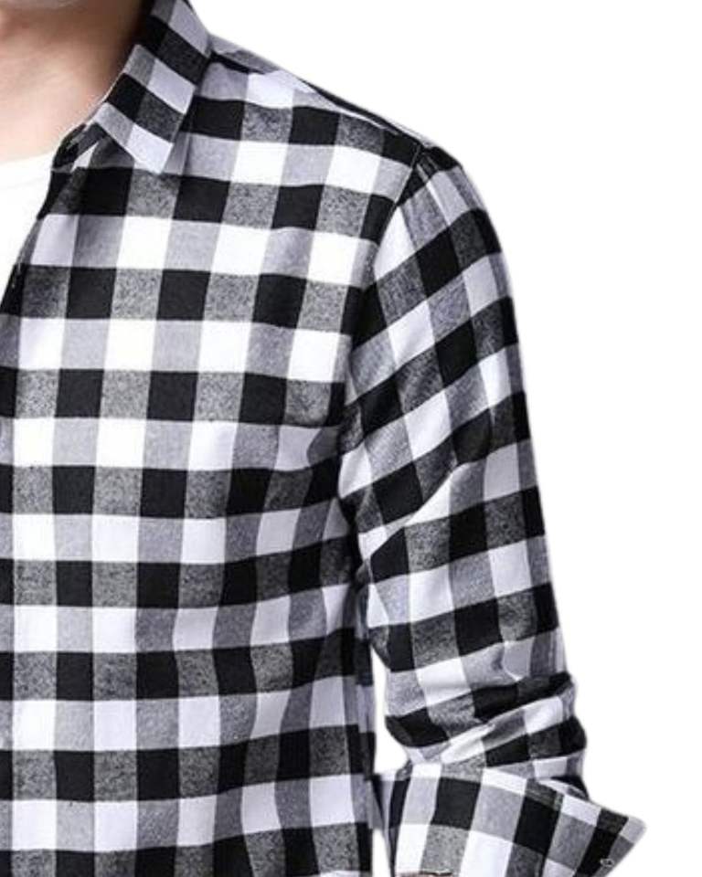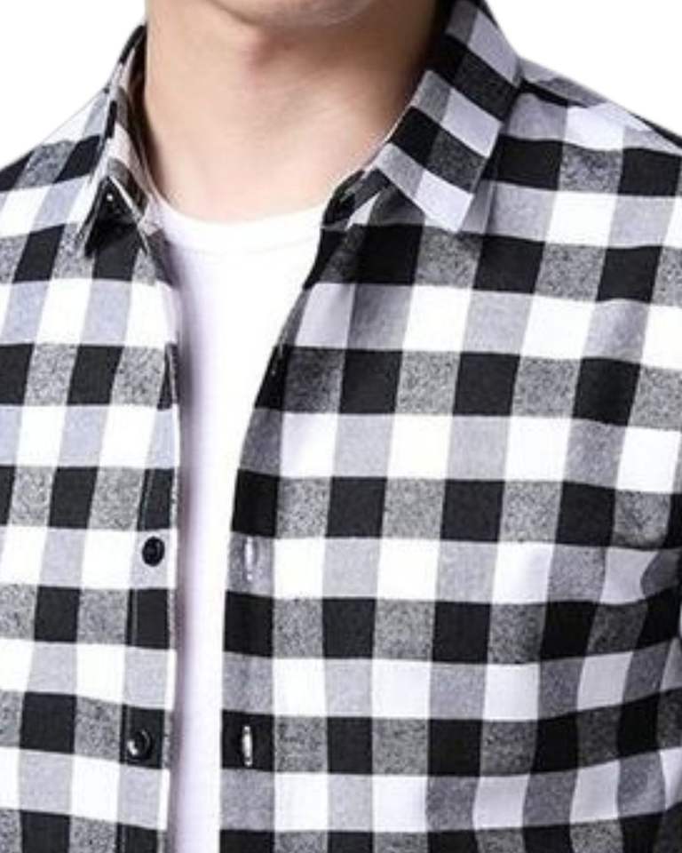 Custom Black White Checkered Shirt Men Long Sleeve Button Down Casual Cotton Flannel Plaid Shirt For Everyday Wear Street Style
