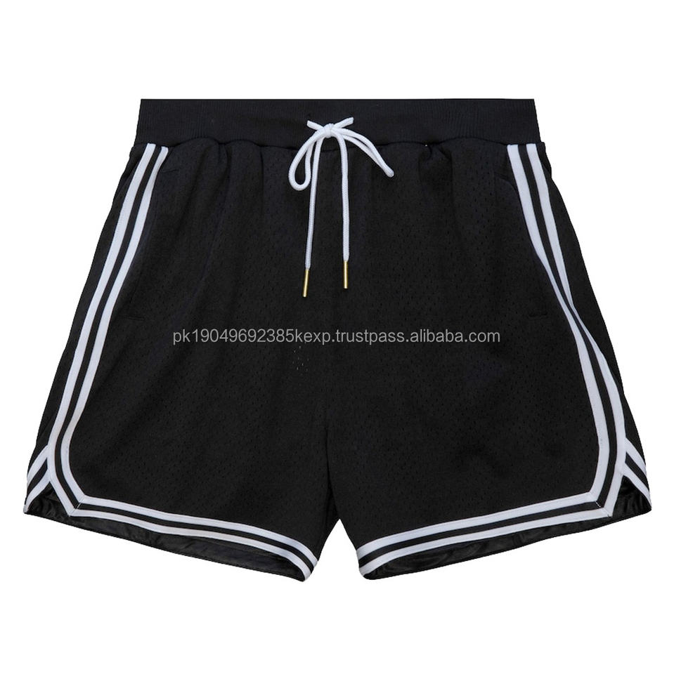 Custom Black White Stripe Double Mesh Basketball Shorts No logo Elastic Waist Drawstring Men Gym Running Shorts