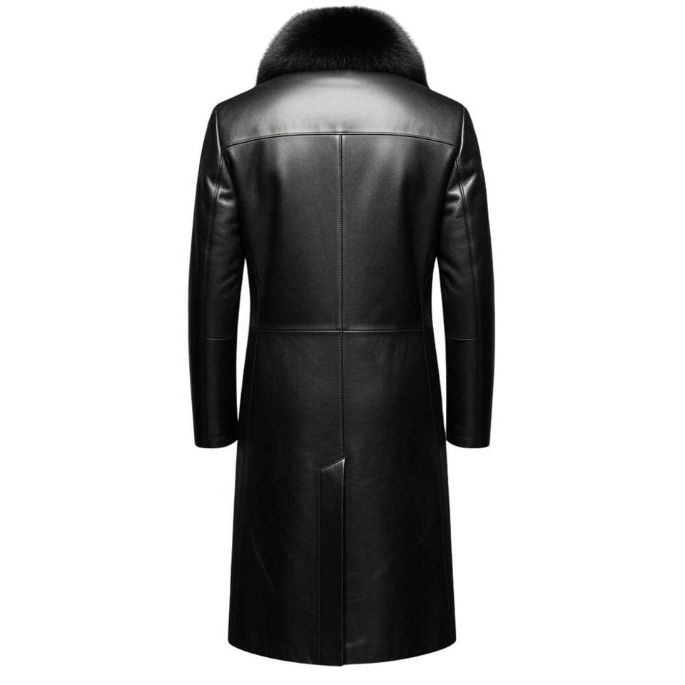 Custom Black Winter Real Leather Fur Long Coat for Men Stylish All Sizes With Customized And Private Label Leather Long Coats