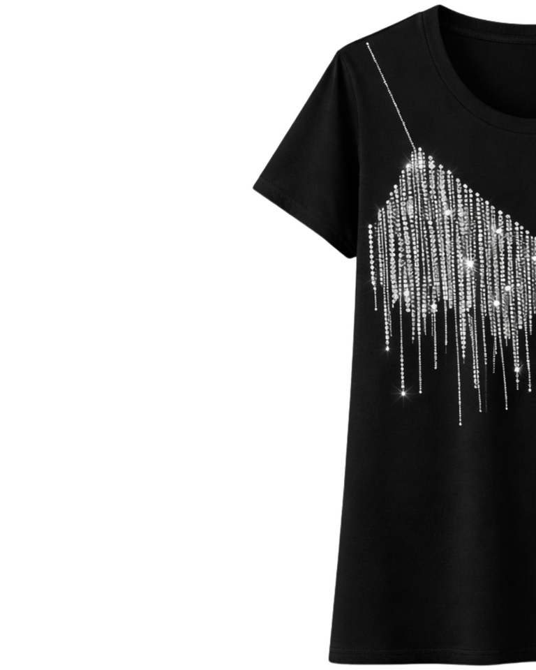 Custom Black Women Cotton T Shirt Rhinestone Heart Graphic Casual Short Sleeve Summer Fashion Top Custom Logo Manufacturer OEM