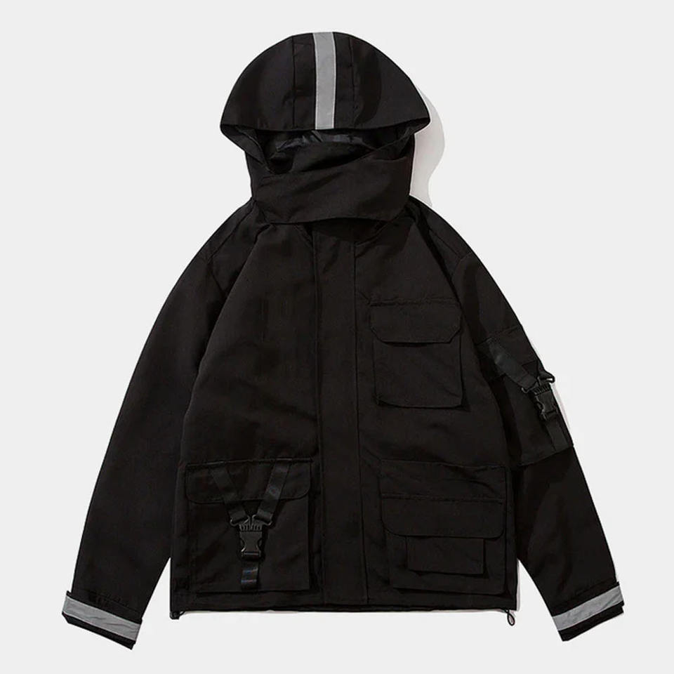 Custom Black Workwear Down Jacket Multi Pocket Tech wear Detachable Hood Bomber Designer Winter Jacket for Men Haus Industries