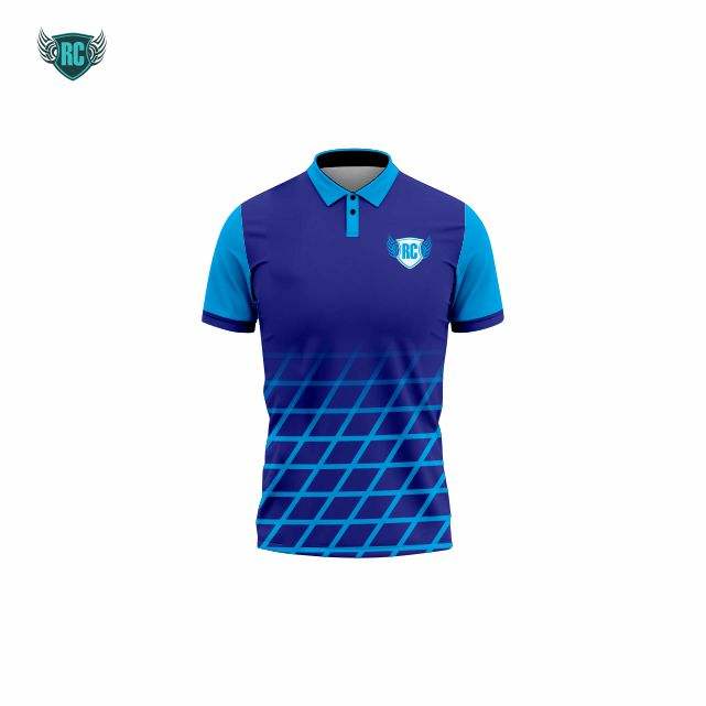 Custom Black and Blue Gradient Polo Shirt Short Sleeve Sportswear with Geometric Pattern for Team Uniform