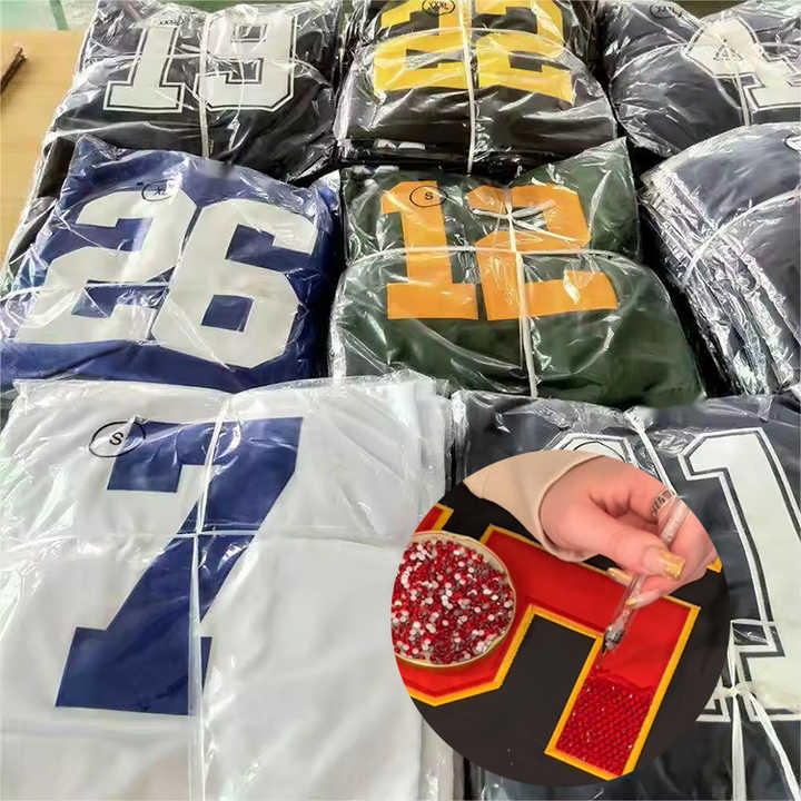 Custom Blank Fashion Sleeved Rhinestone Embroidered Print Boxy American Football Jersey All Team Rugby Shirts For DIY