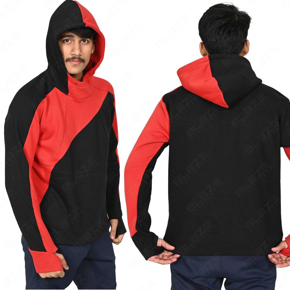 Custom Blank Heavyweight Fleece Boxy Hoodies Sweatshirts Pullover Color Block Hoodie Men Running Top contrast panel red black
