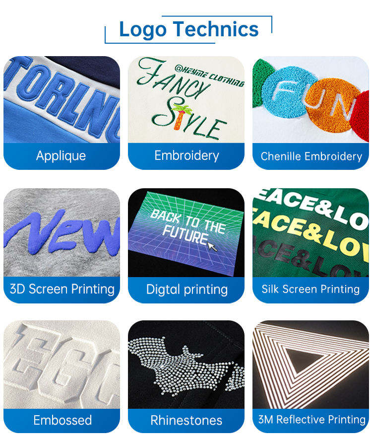Logo position:Front, Left Sleeve, Right Sleeve, back, back neck, lower hem