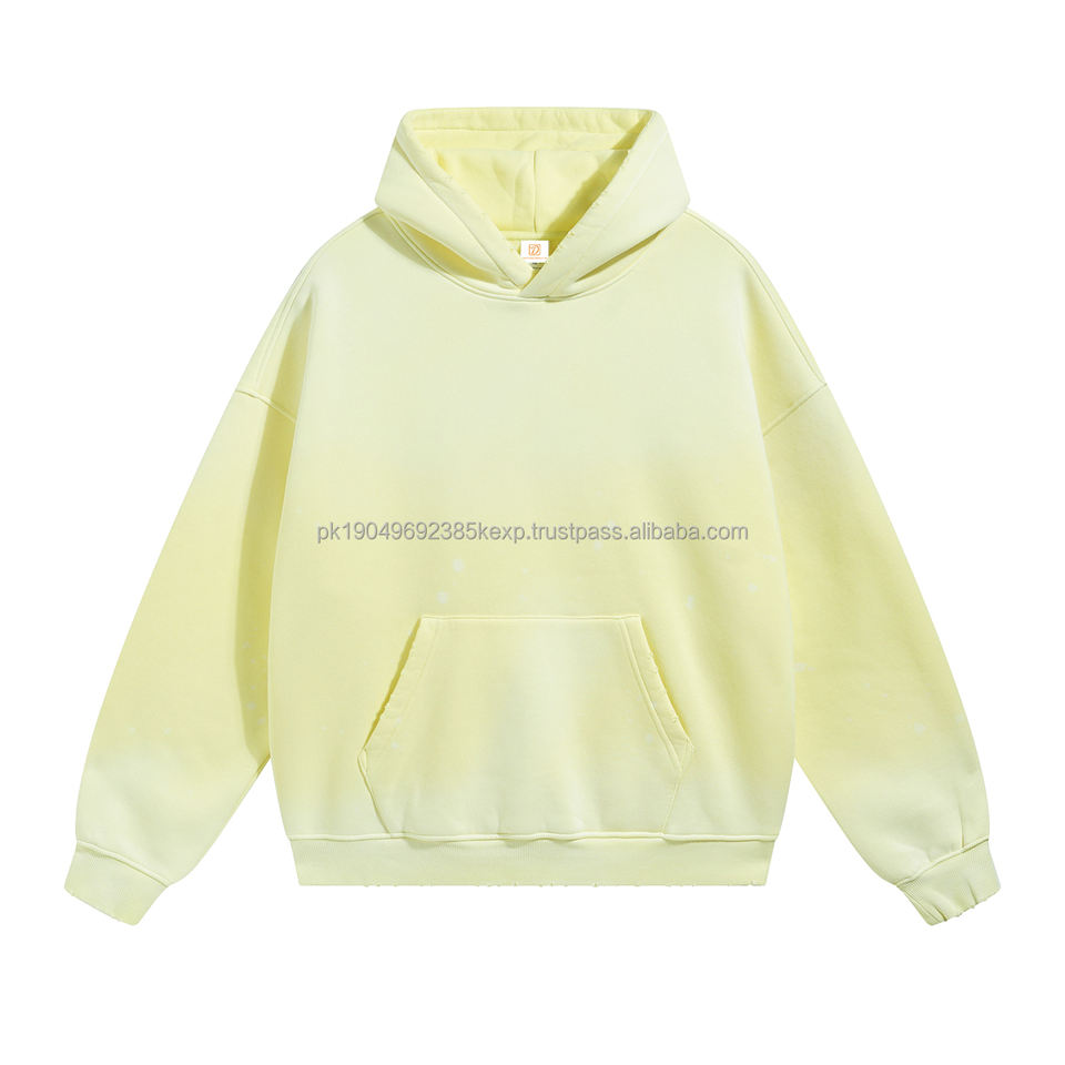 Custom Blank High-Quality Ink-Spray Dye Wash Vintage Frayed Hem Hooded Fleece Hoodie