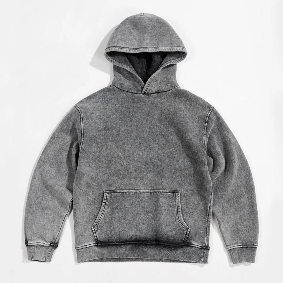 Custom Blank Regular Gsm Grey Black Vintage Distressed Wholesale Men Acid Wash Hoodie