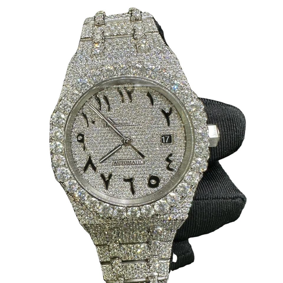 Custom Bling VVS Moissanite Diamond Luxury Watch with Leather Strap Iced Out Design Quartz Movement for Gift