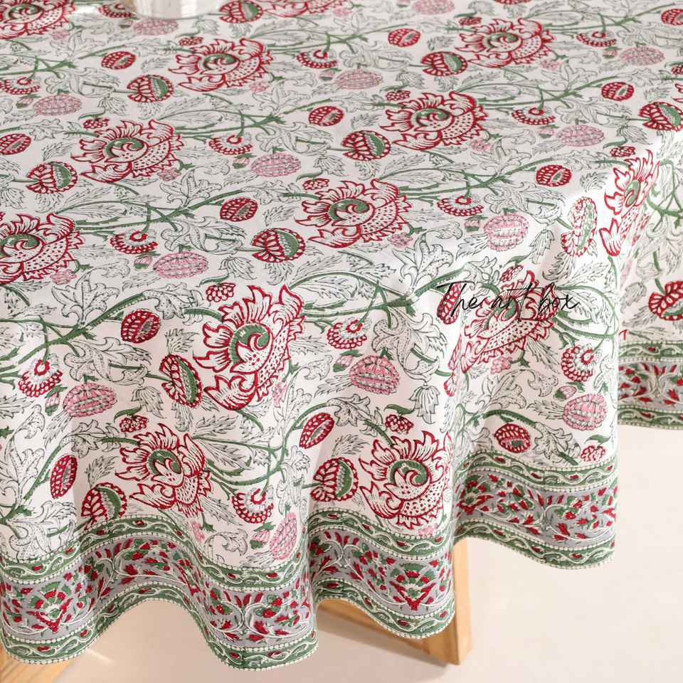 Custom Block Print Hotel Tablecloths Vintage Banquet 100%cotton Table Cloth for Events Fancy Round Table Cover