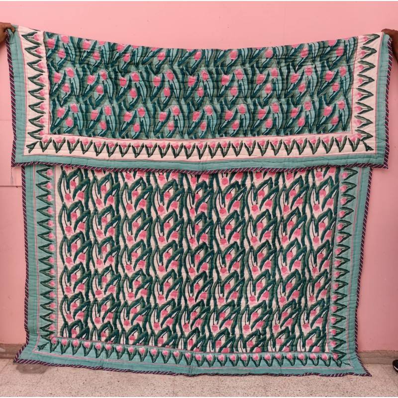 Custom Block Printing Fabric Blankets With Cotton Filling Quilted Reversible Comforter Twin Size Winter Warm Home Bedding Quilt