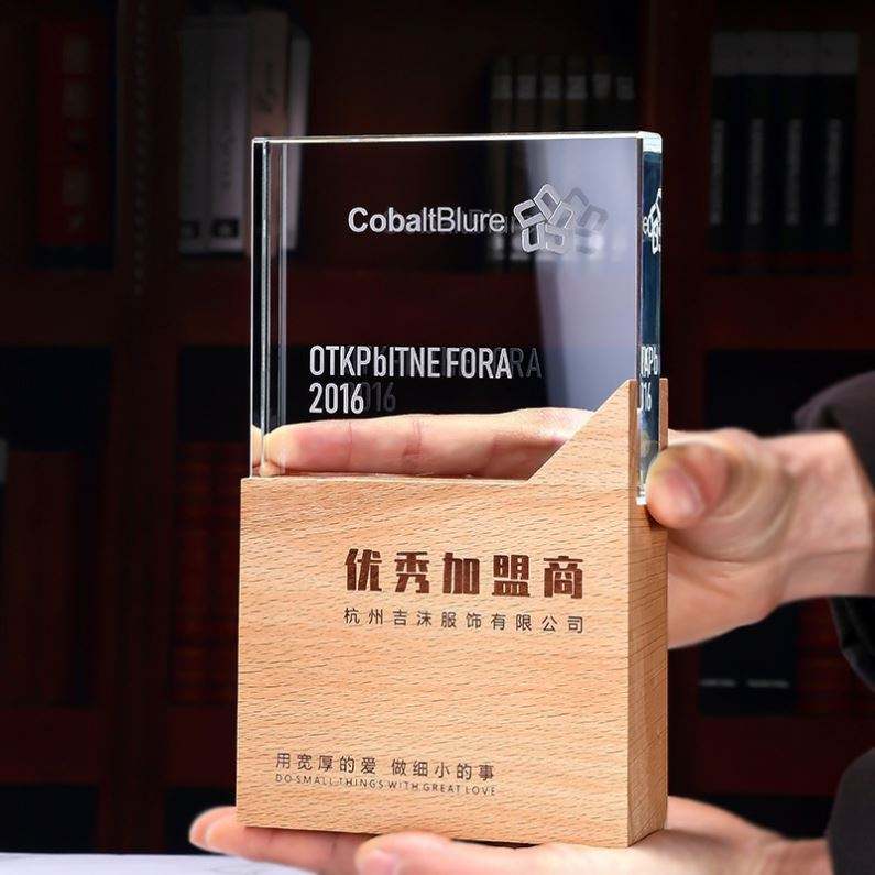 Product name:Glass And Wood Shield Wooden Award Gold Plaque Trophy with Wood Base