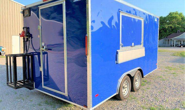 Custom Blue 8.5x16 Food Trailer with Pump for Fruit Corn Milk Vegetable Processing Winery Application