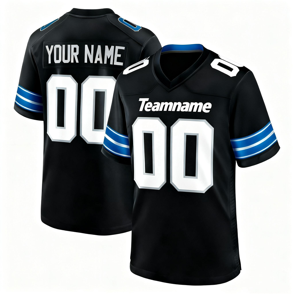 Custom Blue Black White American Football Jersey Team Uniform Personalized Name Number Breathable Mesh Short Sleeve Unisex