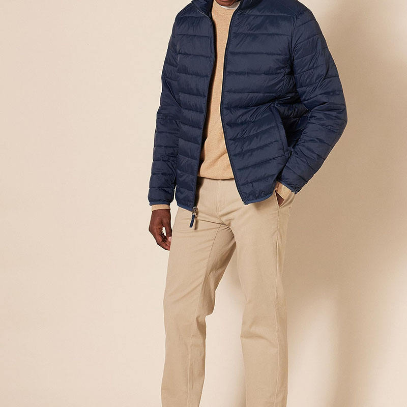 Custom Blue Color Polyester Bubble Canvas Jacket Stand Collar Waterproof Puffer Coat Regular Size Manufacturer Stock Options