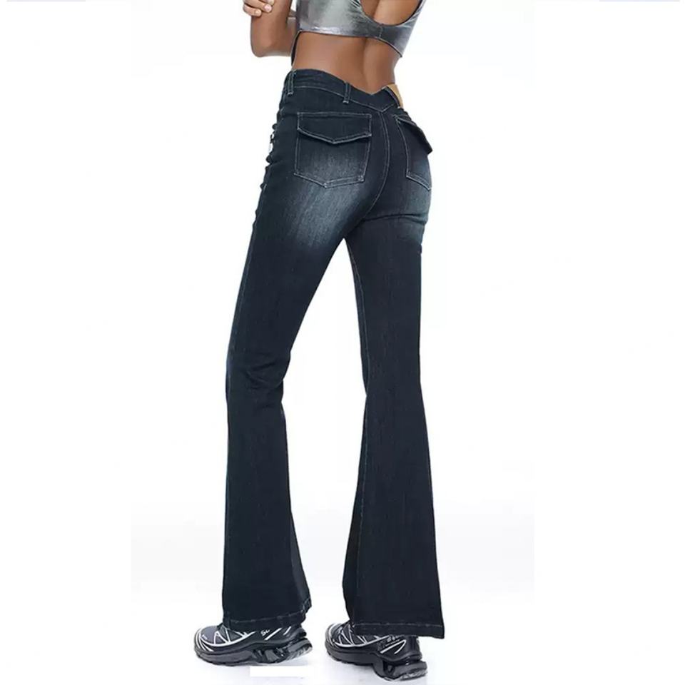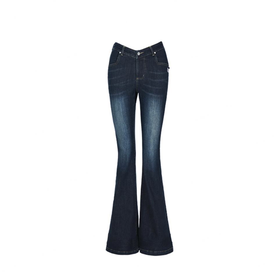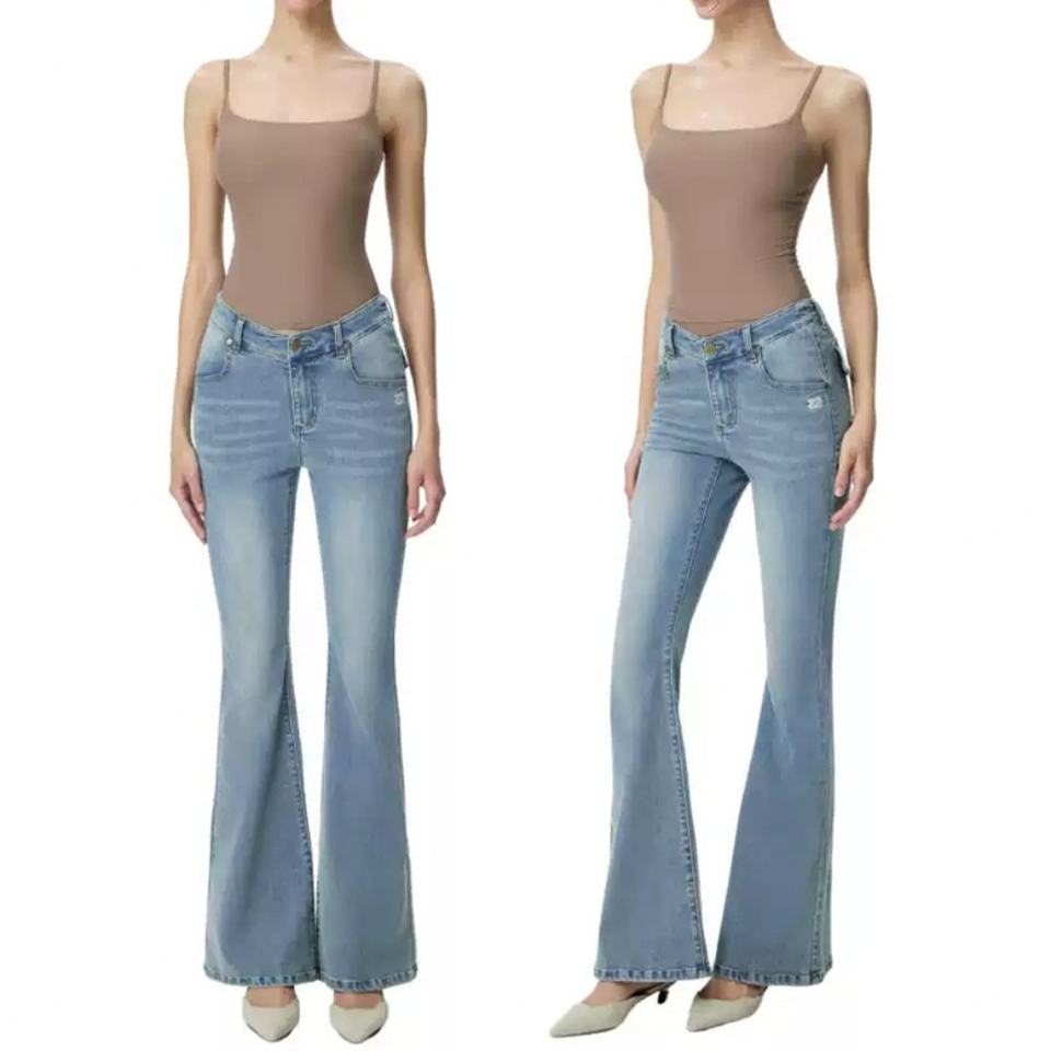 Custom Blue Slim Fit Jeans Pants for Women 100% Cotton Denim Fabric Dirty Wash Vintage Skinny Flared Trousers Women's Jeans
