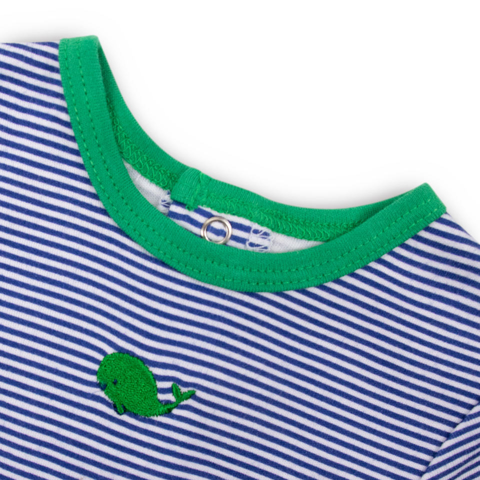 Keywords 1:Blue Striped Baby Set, Whale Embroidery, Matching Hat