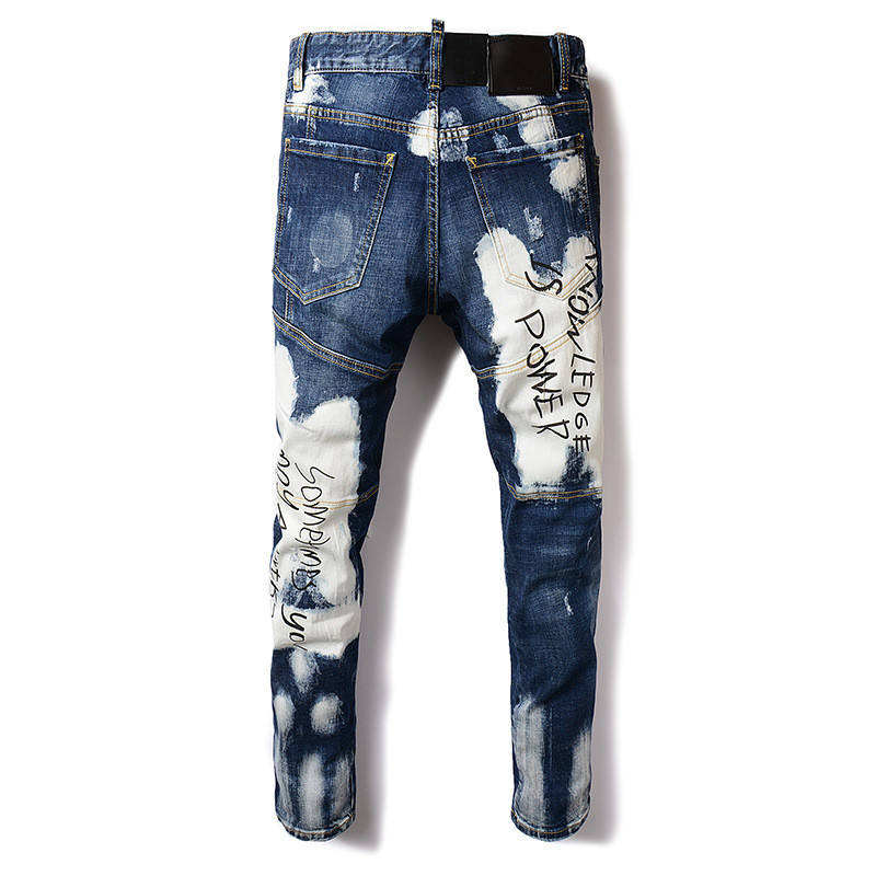 Custom Blush Elastic Stretch Jeans Custom printing Hip hop styles boys denim Slim Fit Men Denim Pants Destroyed Taped