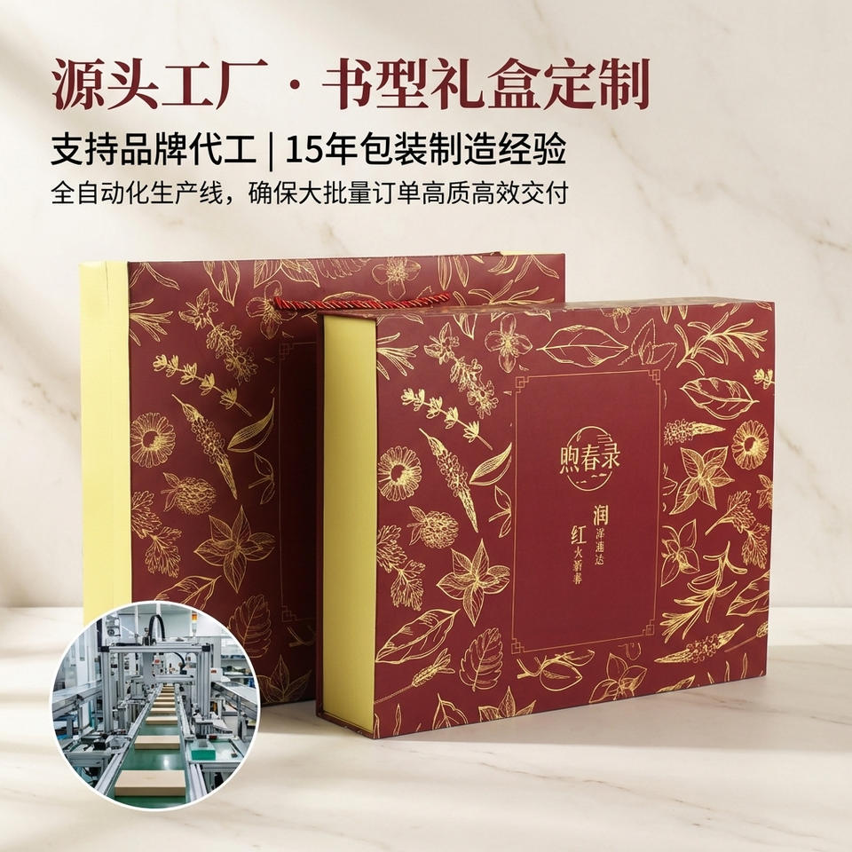 Custom Book Shaped Gift Box Red Gold Floral Design Paper Packaging Wenzhou Origin