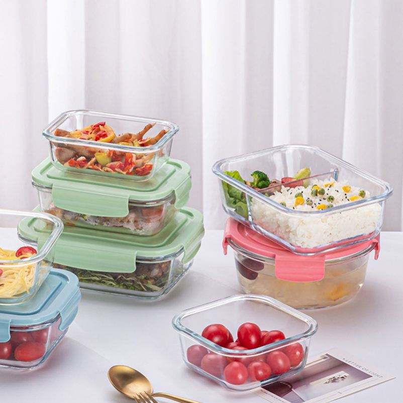 Custom Eco-Friendly Borosilicate Glass Food Container 400/700/1000ml Capacity Rectangle Lunch Box Gift Box Back School Kitchen