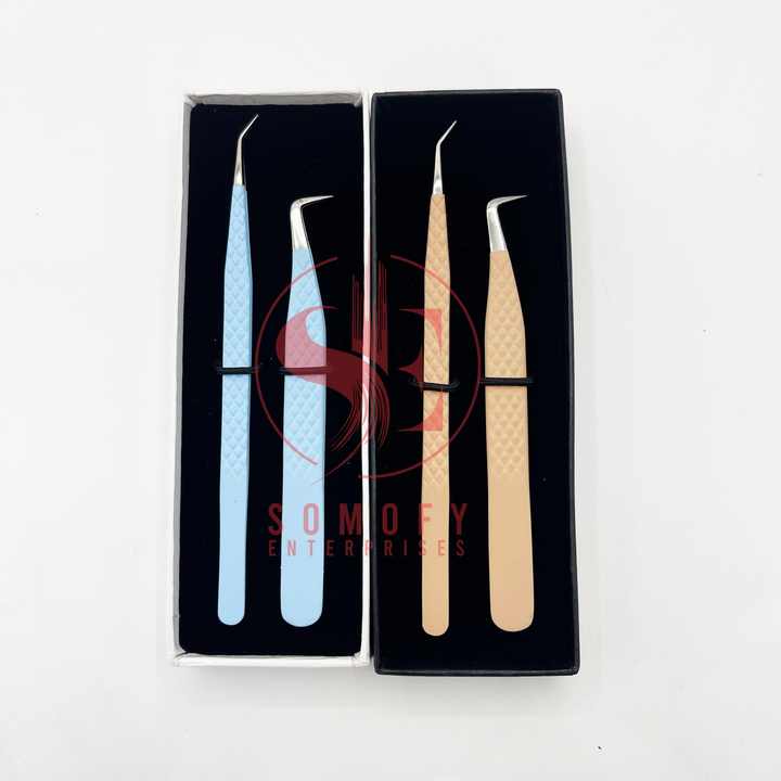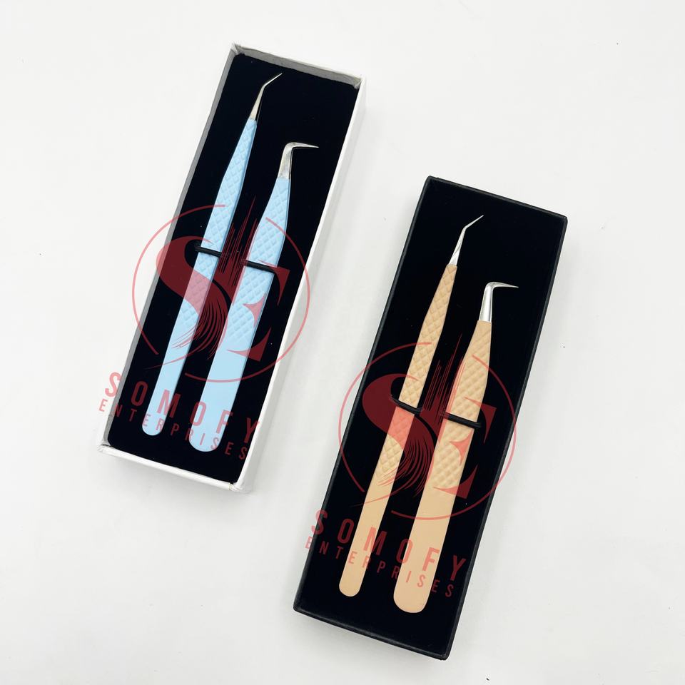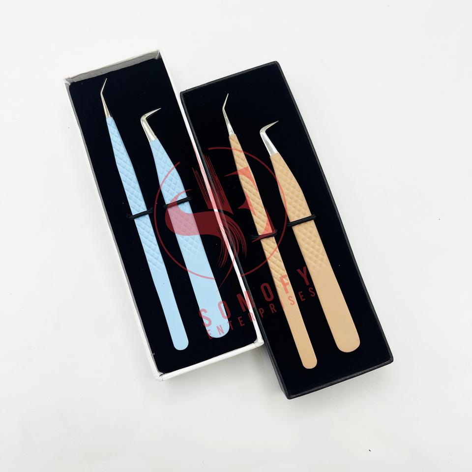 Professional Custom Box Packaging Nano Grip Microfiber Eyelash Tweezers Set 45-90 Degree Volume Lash Extension Durable High