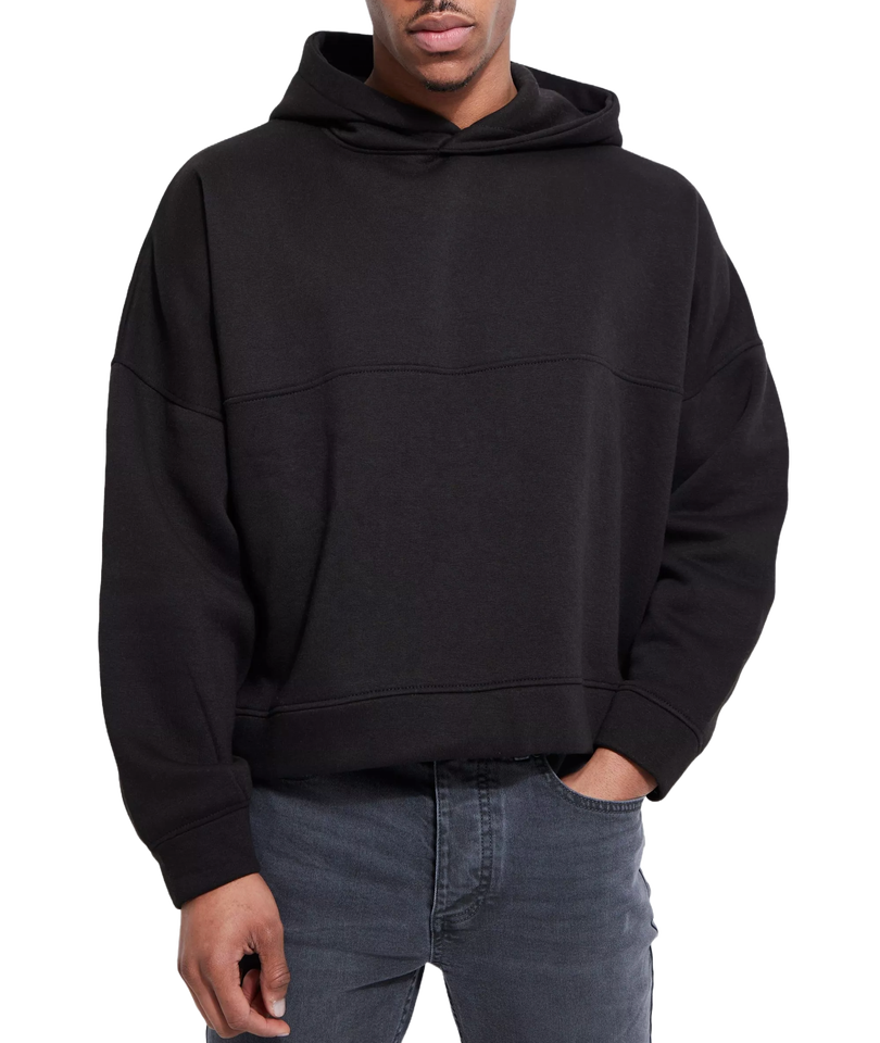 Custom Men's Hoodie With Printed Pattern 100% Cotton Fleece Polyester Boxy Fit Drop Shoulder Crop Length Grey Boxed for Winter