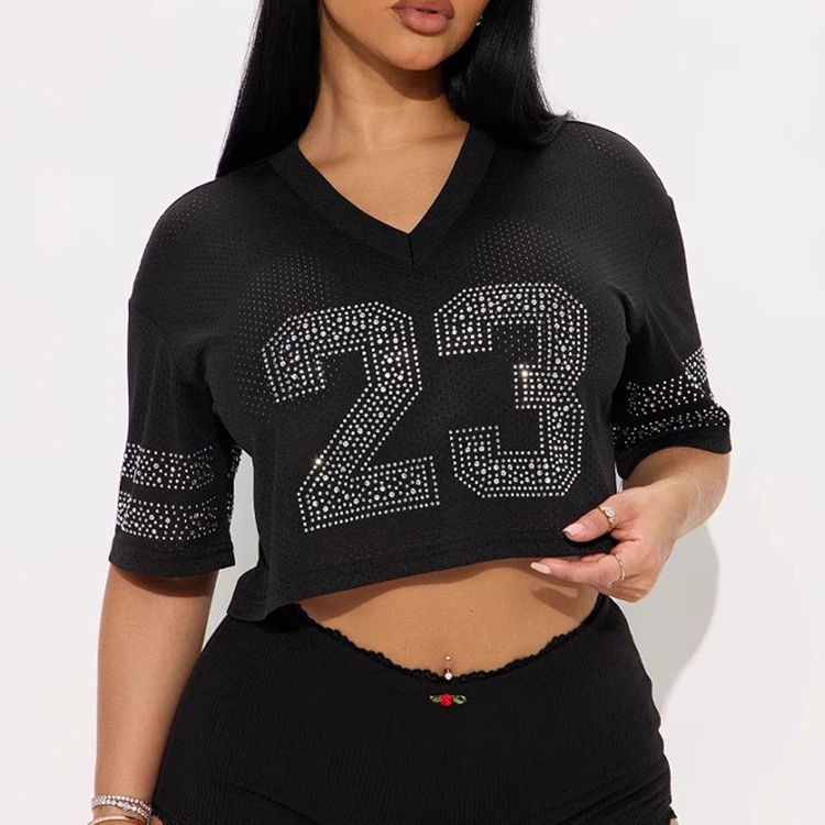 Custom Boxy Fit Sexy Crop Tank Top Rhinestone American Football Jersey Sublimation Baby Tee Cropped Tee For Women