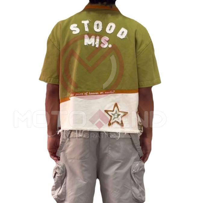 Custom Boxy Streetwear Applique Embroidery Logo Distressed Leather Vintage T-shirt Zip up Polo Shirt