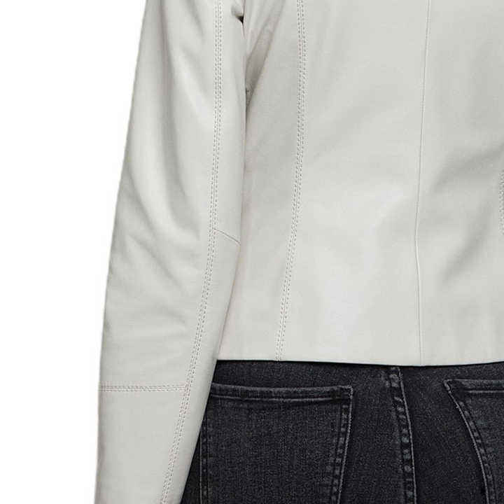 Custom Brand Hot Selling Fashion Slim Fit Motorcycle Design genuine leather Jacket WHITE Leather Jacket for Women in Autumn