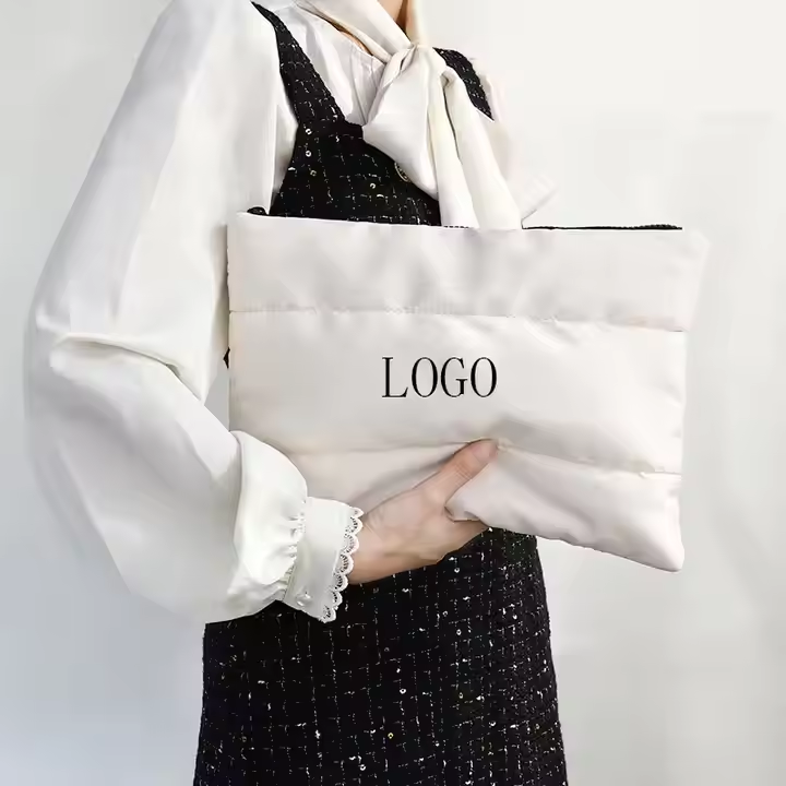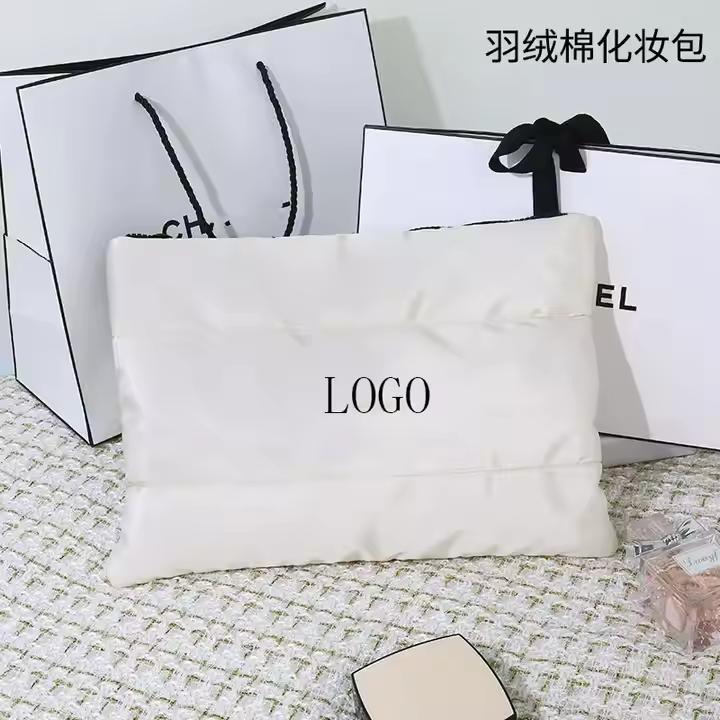 Custom Brand Logo Duvet Cotton Trendy White Large Capacity Makeup Zipper Daily Lightweight Washing Bag