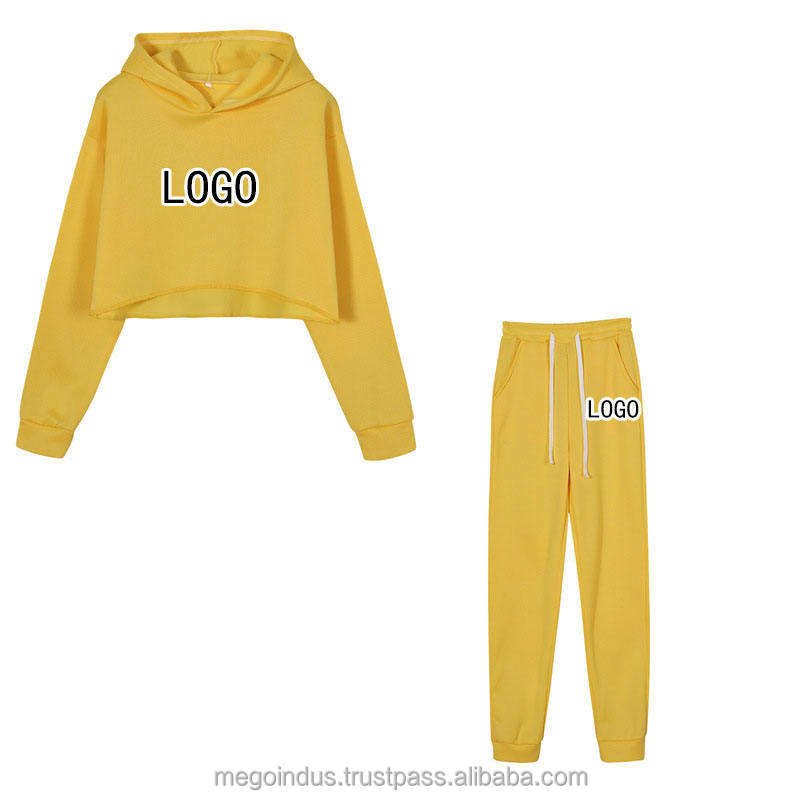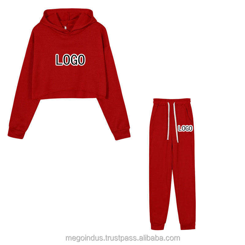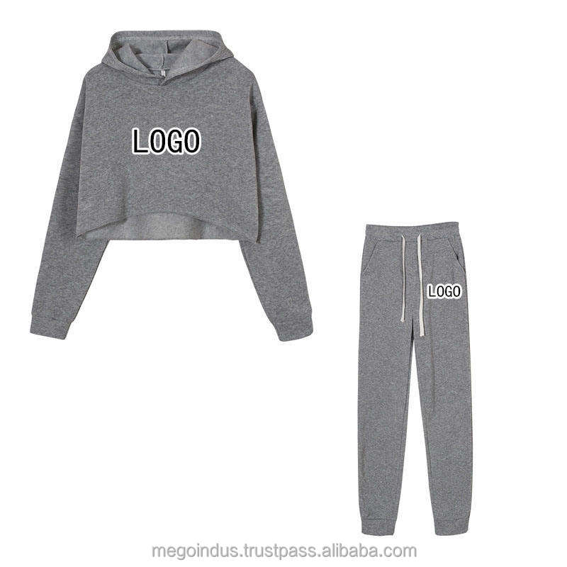 Custom Logo Ladies Tracksuits Crop Hoodie Sets