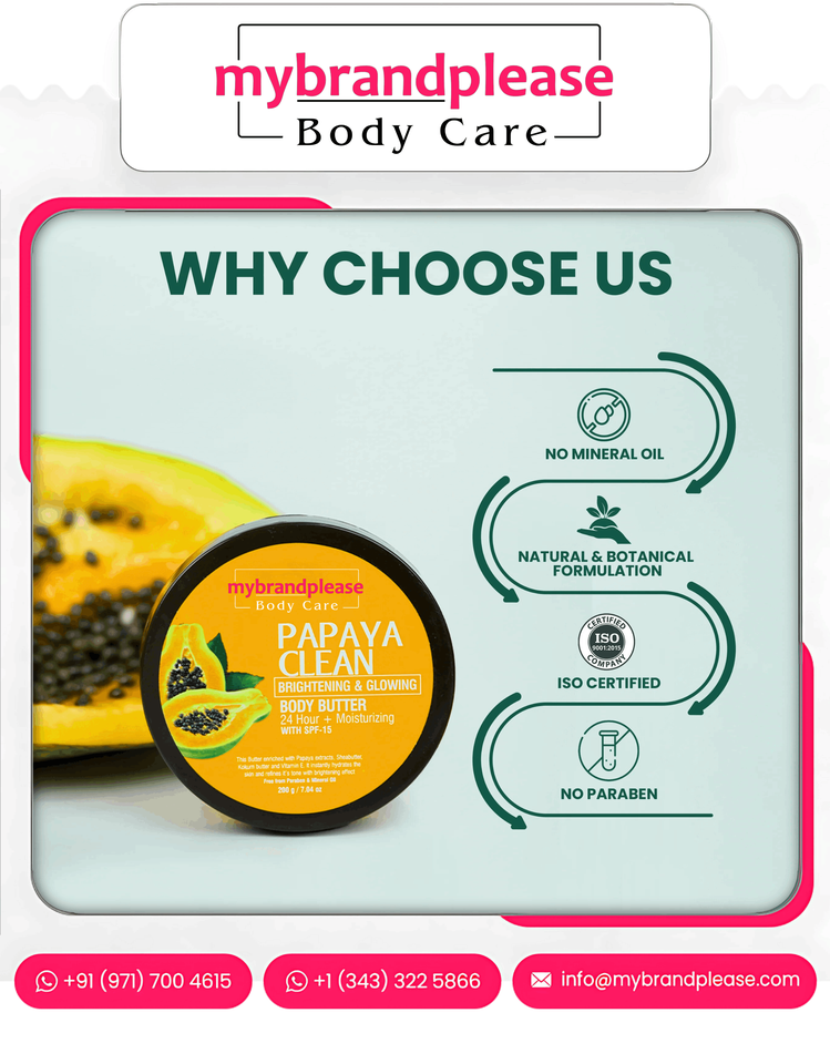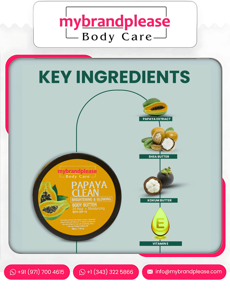 Custom Brand Papaya Body Butter for Brightening and Glow Intensive Moisturizing Cream for Dry Dull and Uneven Skin