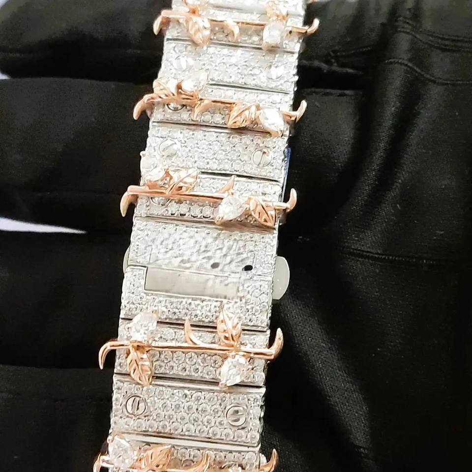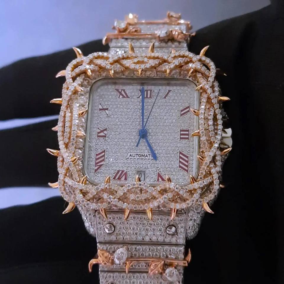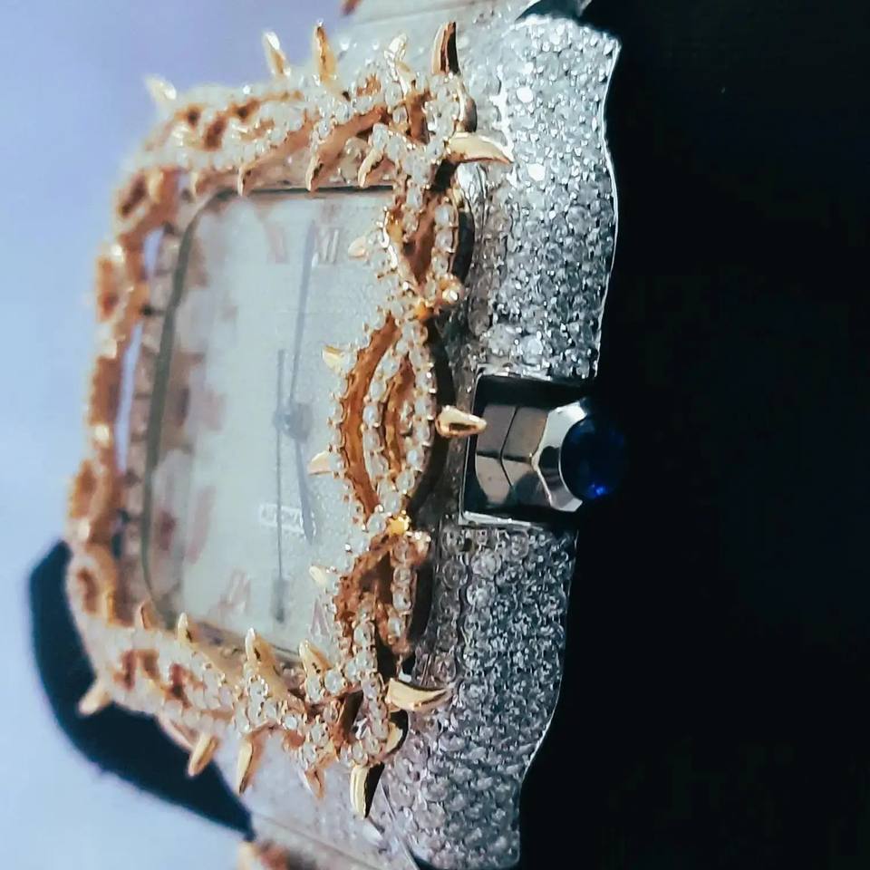 Custom Brand Premium Luxury 16mm Yellow Gold Stainless Steel Quartz Watch Fully Iced Moissanite Full Diamond Appearance Dial