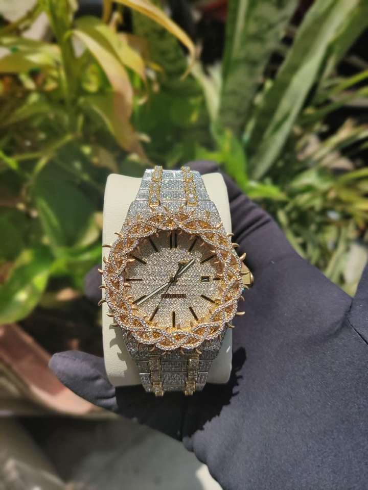 Custom Brand Premium Stainless Steel Wristwatch Full Diamond Appearance Fully Iced Moissanite Available White Yellow Gold for
