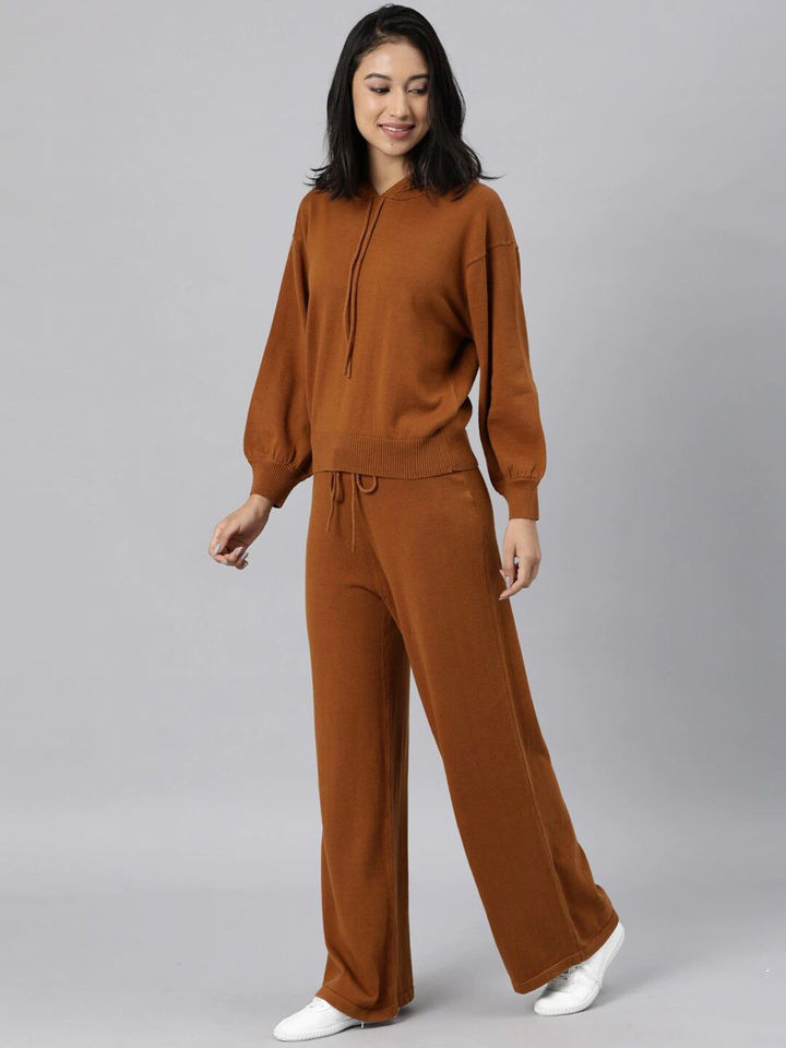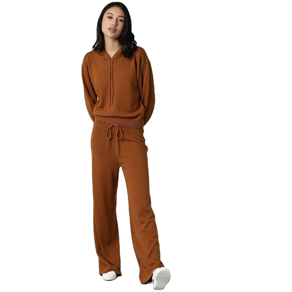 Custom Brand Women's Winter Street Wear 80% Cotton 20% Polyester Solid Drop Shoulder Hoodies Flared Zipper Sweatpants Hooded