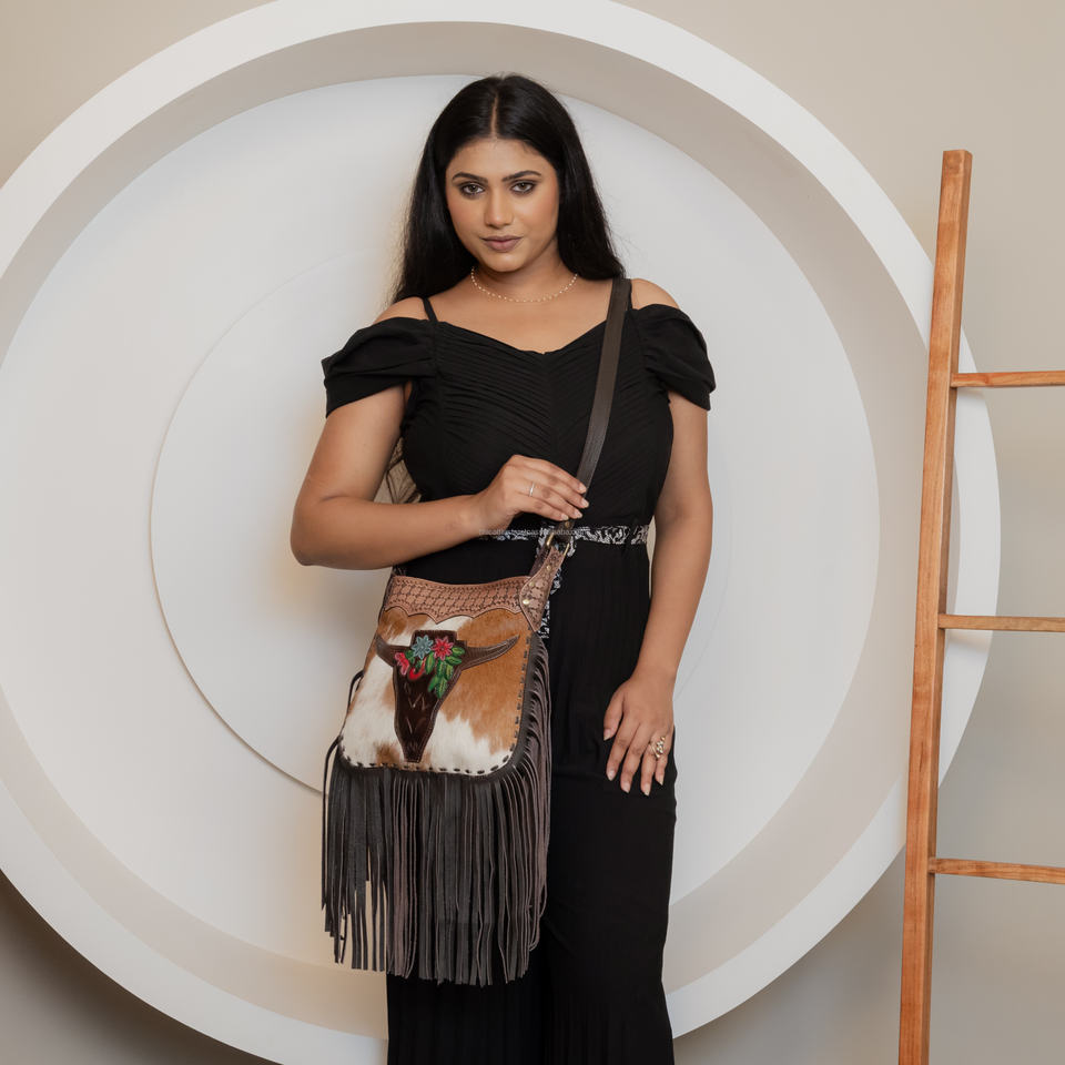 Product name:Hair On & Tooled Leather Fringe Crossbody Purse
